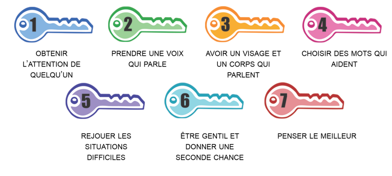 Les Clés de Communication Kimochis® sont les outils pour nous aider à communiquer les sentiments de manière positive: Contact visuel, ton de la voix, langage corporel et plus. Ce sont les ingrédients clés pour communiquer avec succès et construire de solides relations, ce que nous appelons les compétences sociales.